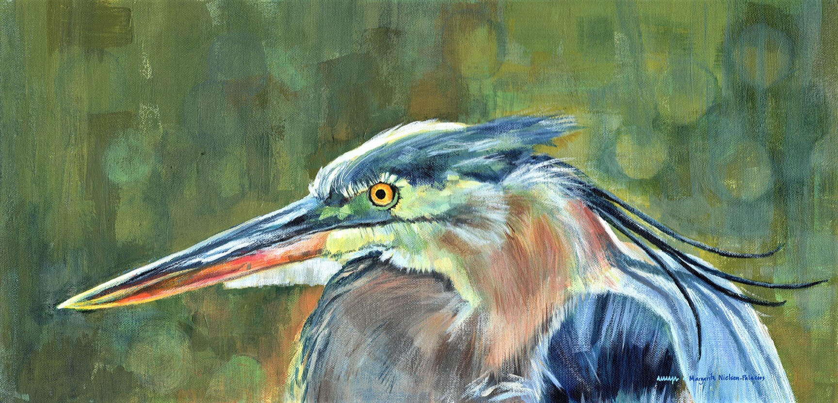 "Blue Heron at Dusk", acrylics 12"x12", $300